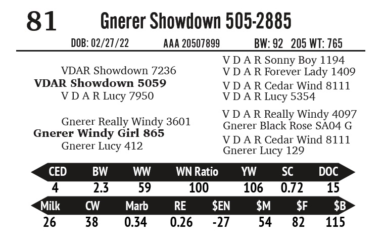 | Gnerer Showdown 505-4898 | 90 | Gnerner Angus | Yearling Bull |