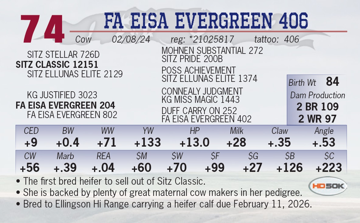 • Calving ease deluxe with this prospective sire. • The Classic x Rangeland is a nice cross that will offer balance across the board.
