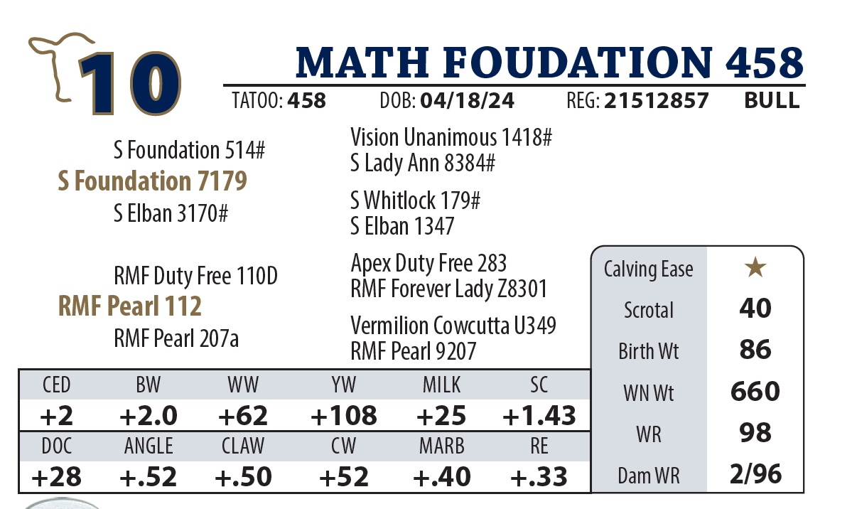 | MATH FOUDATION 458 | 10 | AGED BULL | AGED BULL |