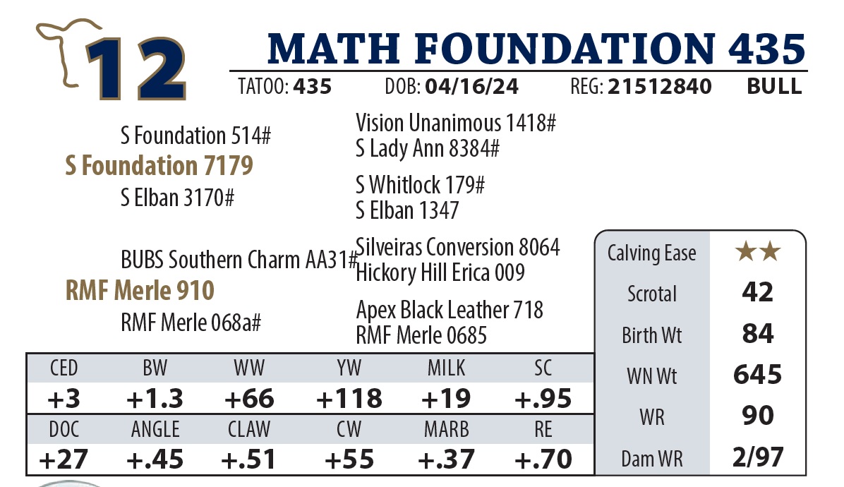 | MATH FOUNDATION 435 | 12 | AGED BULL | AGED BULL |