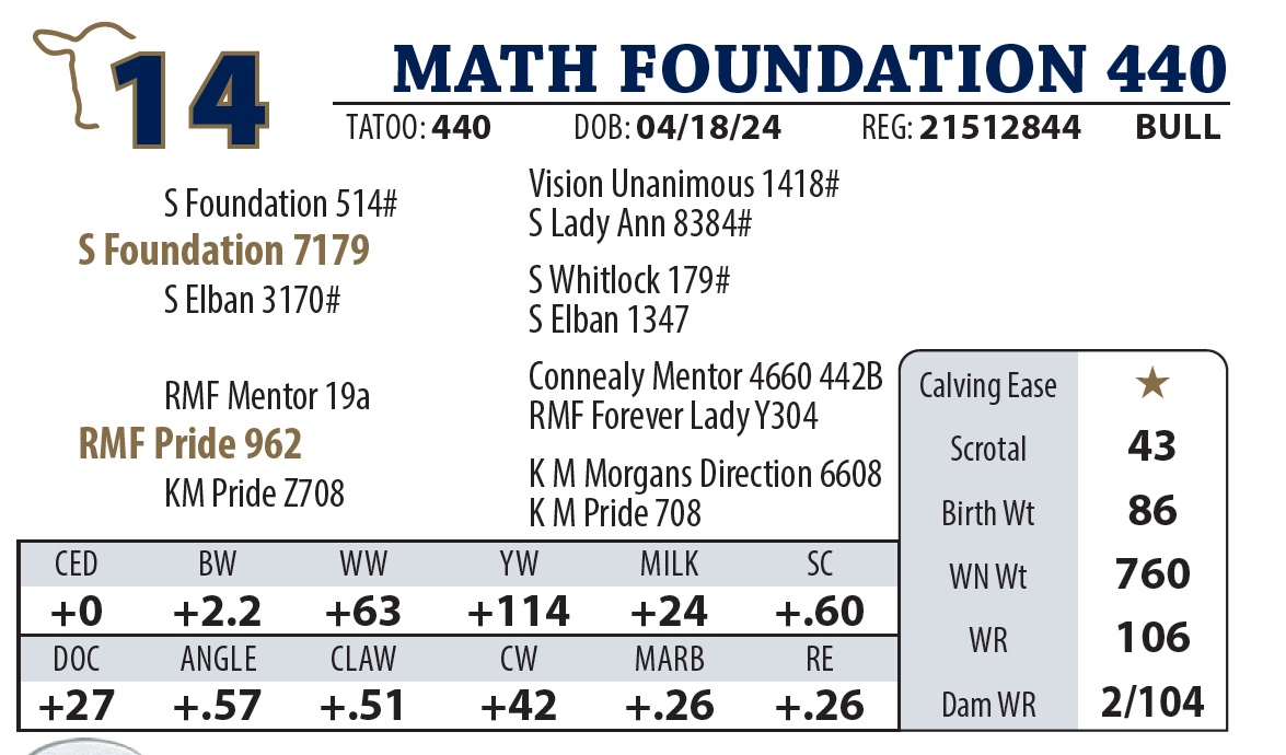 | MATH FOUNDATION 440 | 14 | AGED BULL | AGED BULL |