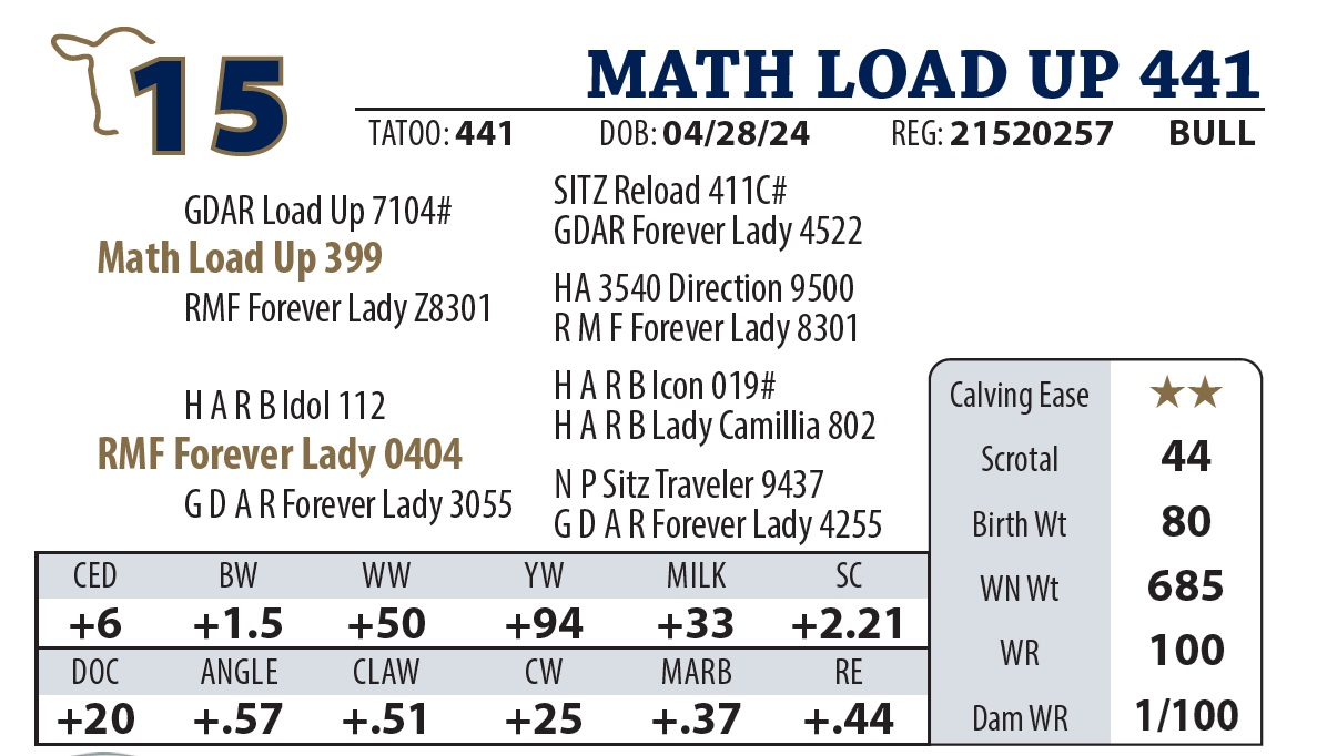 | MATH LOAD UP 441 | 15 | AGED BULL | AGED BULL |