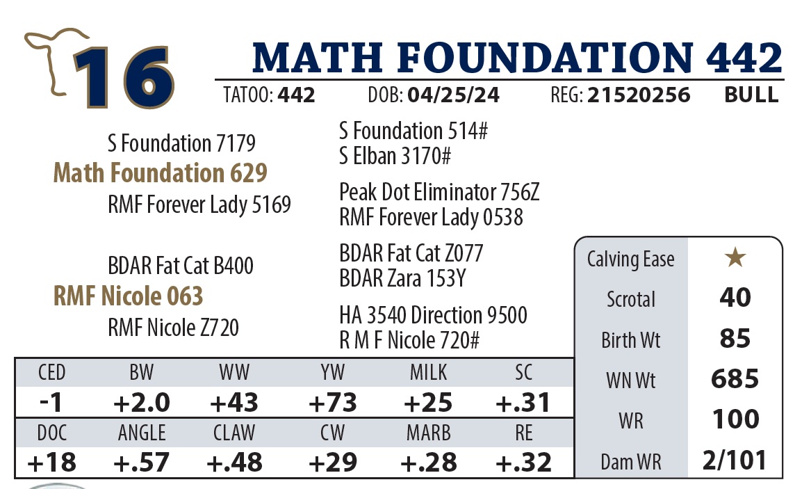 | MATH FOUNDATION 442 | 16 | AGED BULL | AGED BULL |