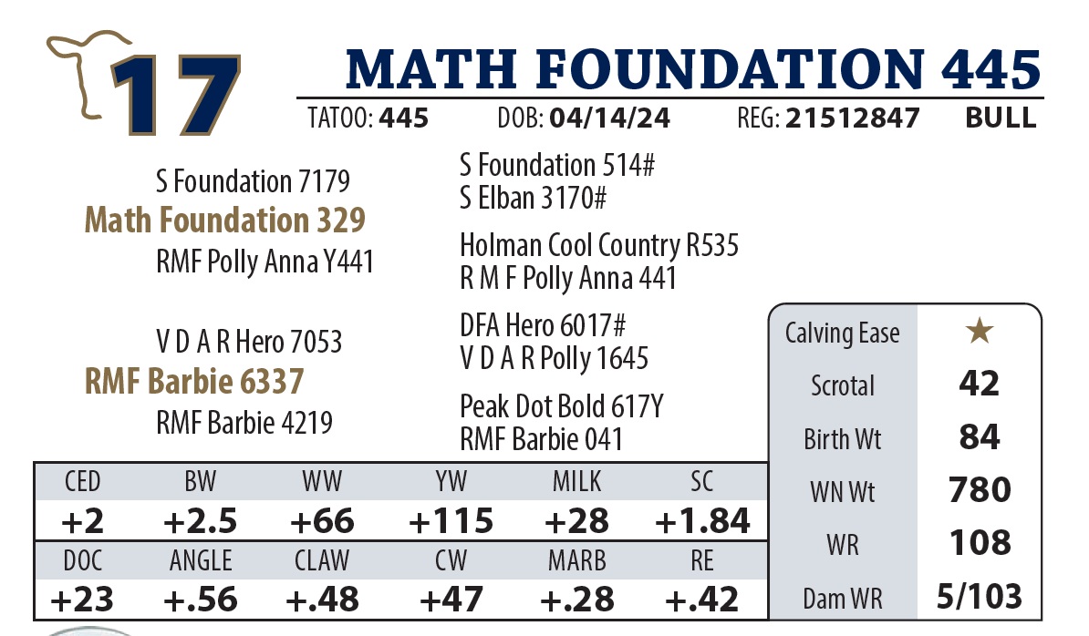 | MATH FOUNDATION 445 | 17 | AGED BULL | AGED BULL |