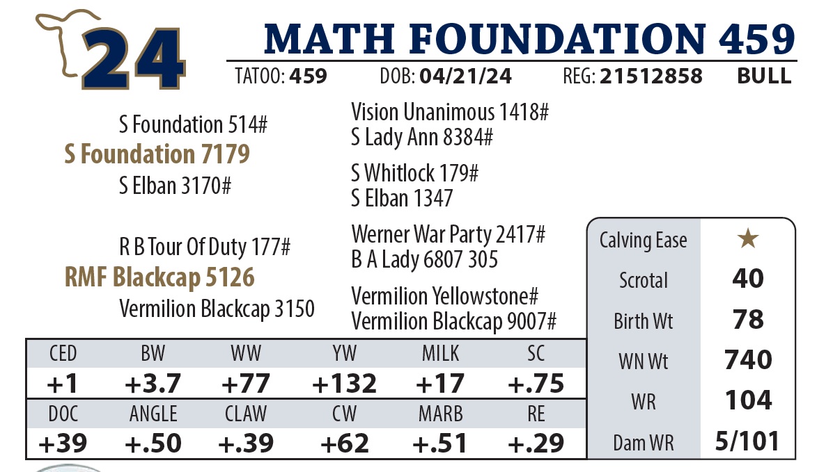 | MATH FOUNDATION 459 | 24 | AGED BULL | AGED BULL |