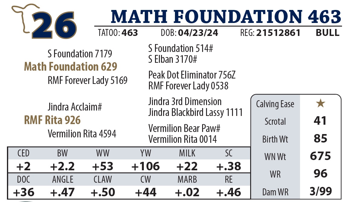 | MATH FOUNDATION 463 | 26 | AGED BULL | AGED BULL |