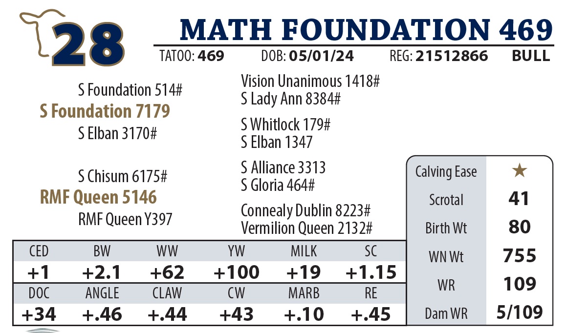 | MATH FOUNDATION 469 | 28 | AGED BULL | AGED BULL |