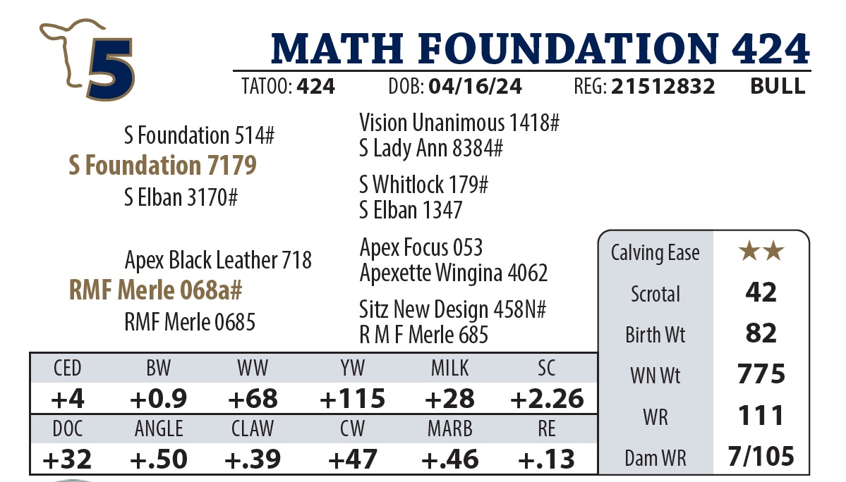 | MATH FOUNDATION 424 | 5 | AGED BULL | AGED BULL |