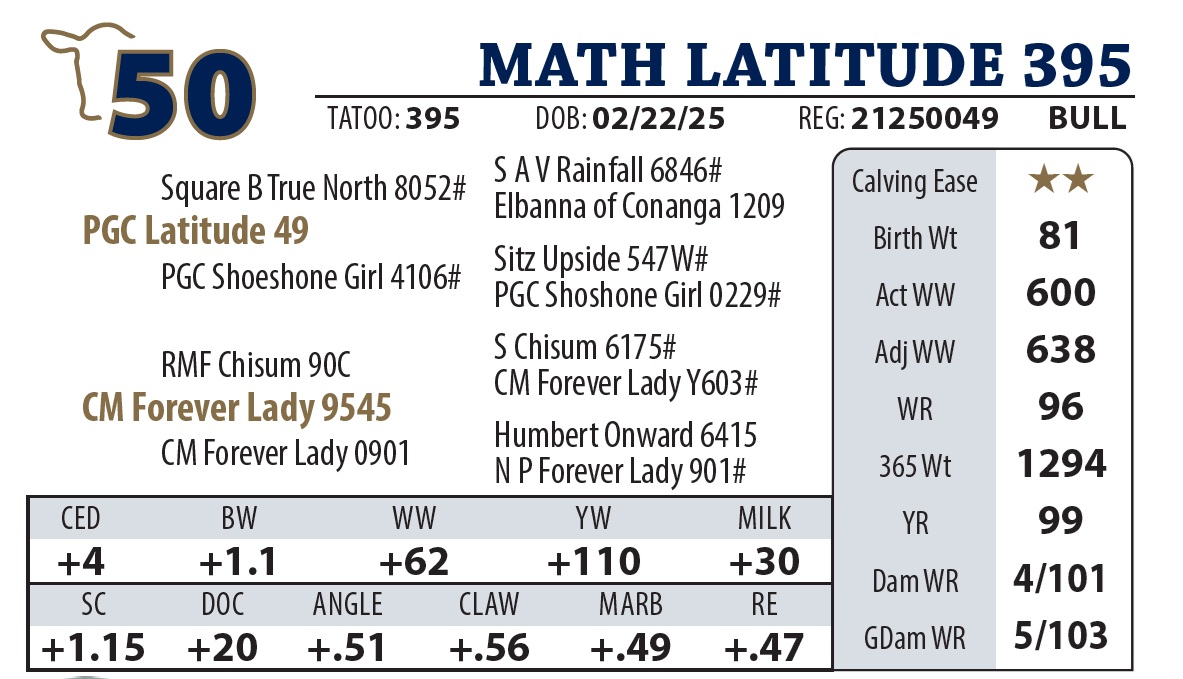 | MATH LATITUDE 395 | 50Y | YEARLING BULL | |