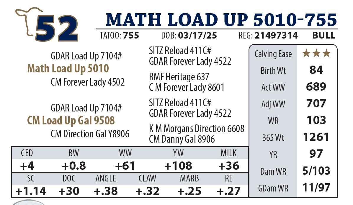 | MATH LOAD UP 5010-755 | 52Y | YEARLING BULL | |